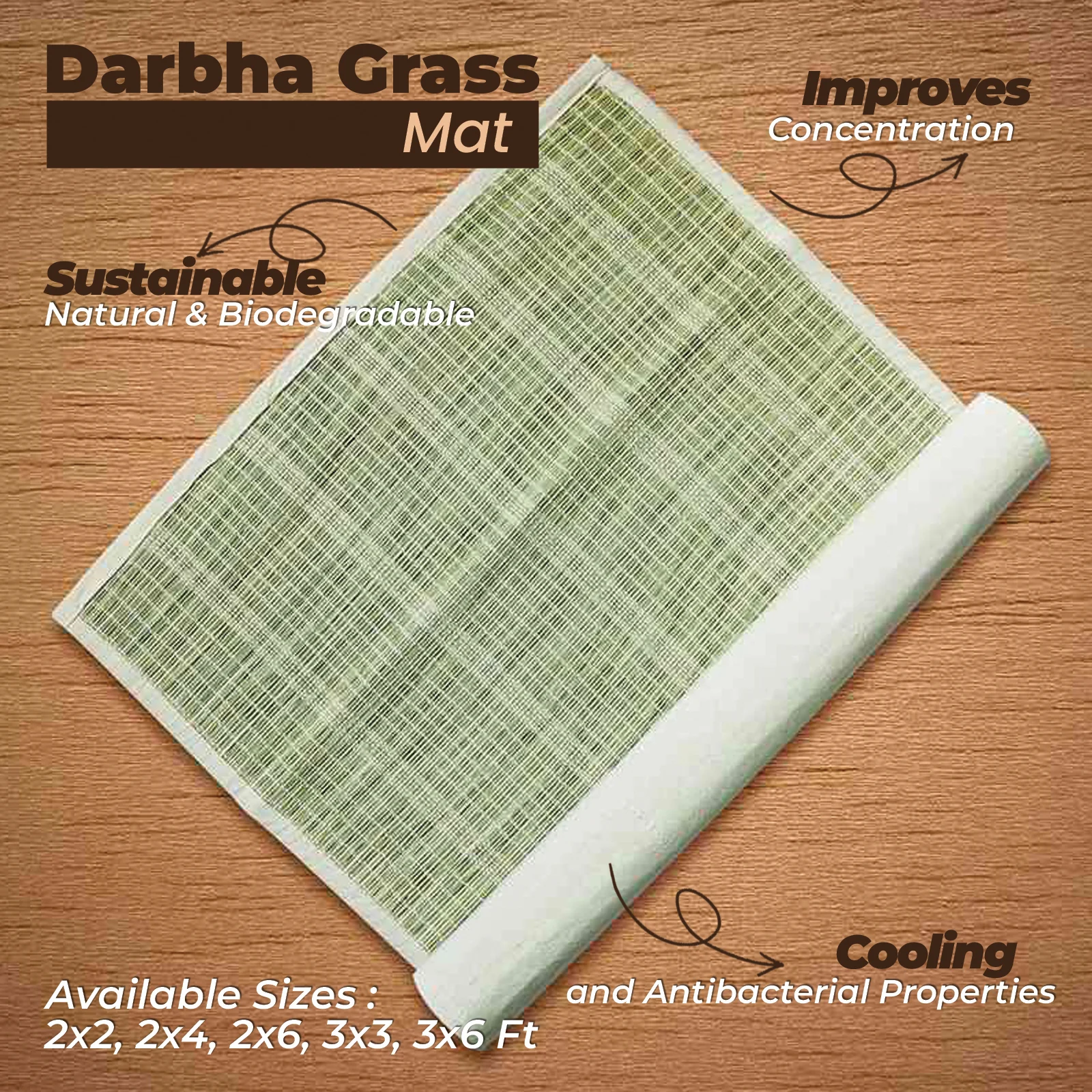 Sitting on a Darbha mat provides a grounded and stable base, which aids in achieving focus and calm during meditation. - Eco-Friendly and Sustainable