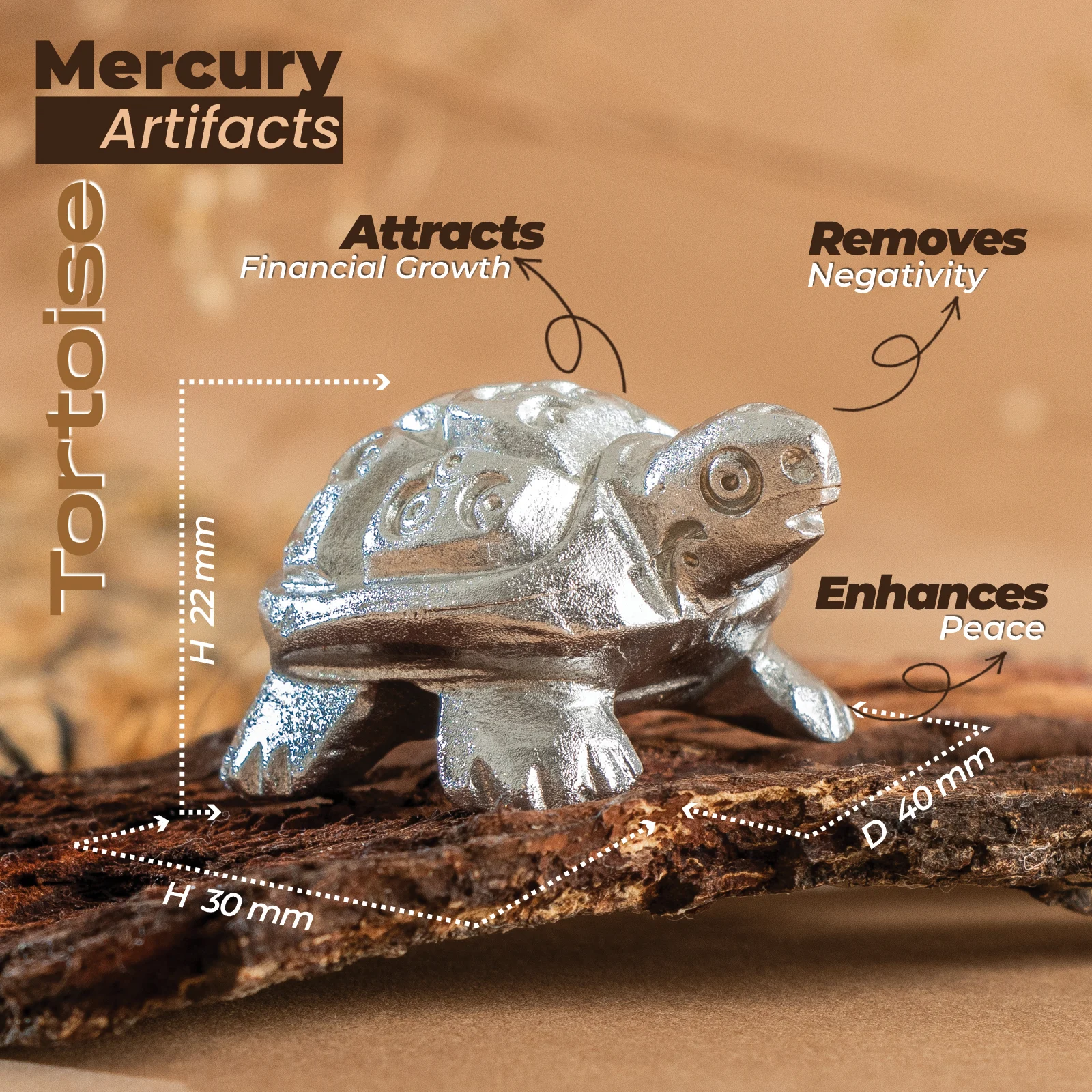 - Revered for its purity and auspiciousness, the Mercury Tortoise brings positive energies to your space.